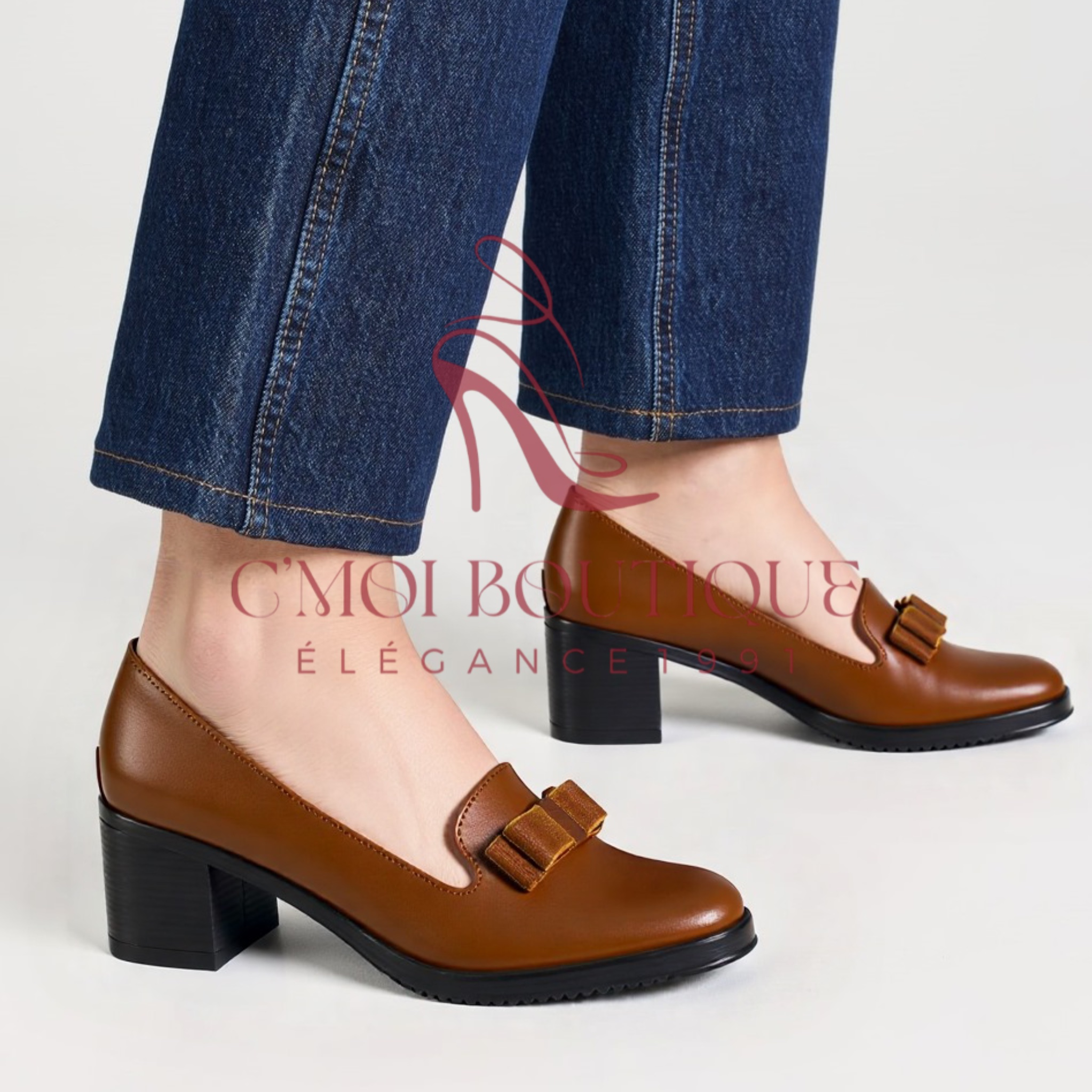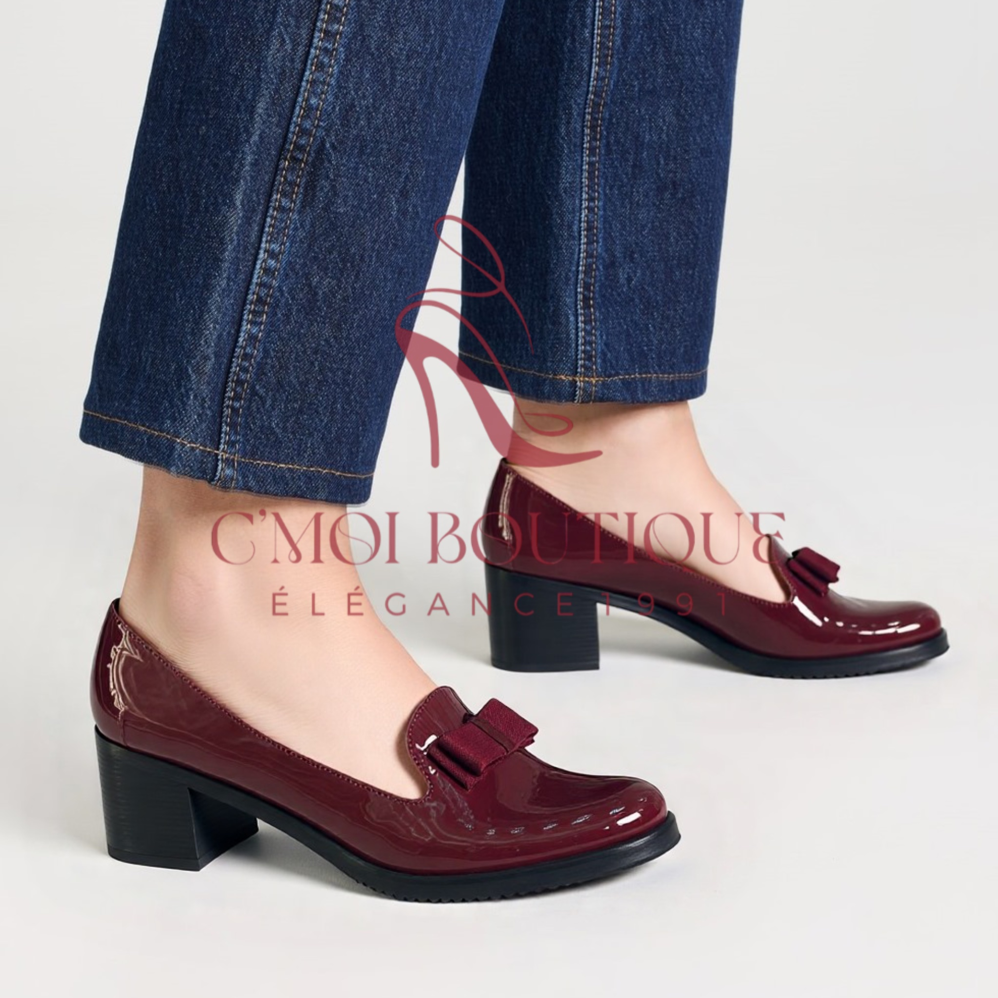 Un escarpin moderne au design intemporel, disponible en Noir Brillant, Marron et Bordeaux Brillant. Conçu pour les femmes qui recherchent une touche chic tout en restant confortables au fil de la journée.