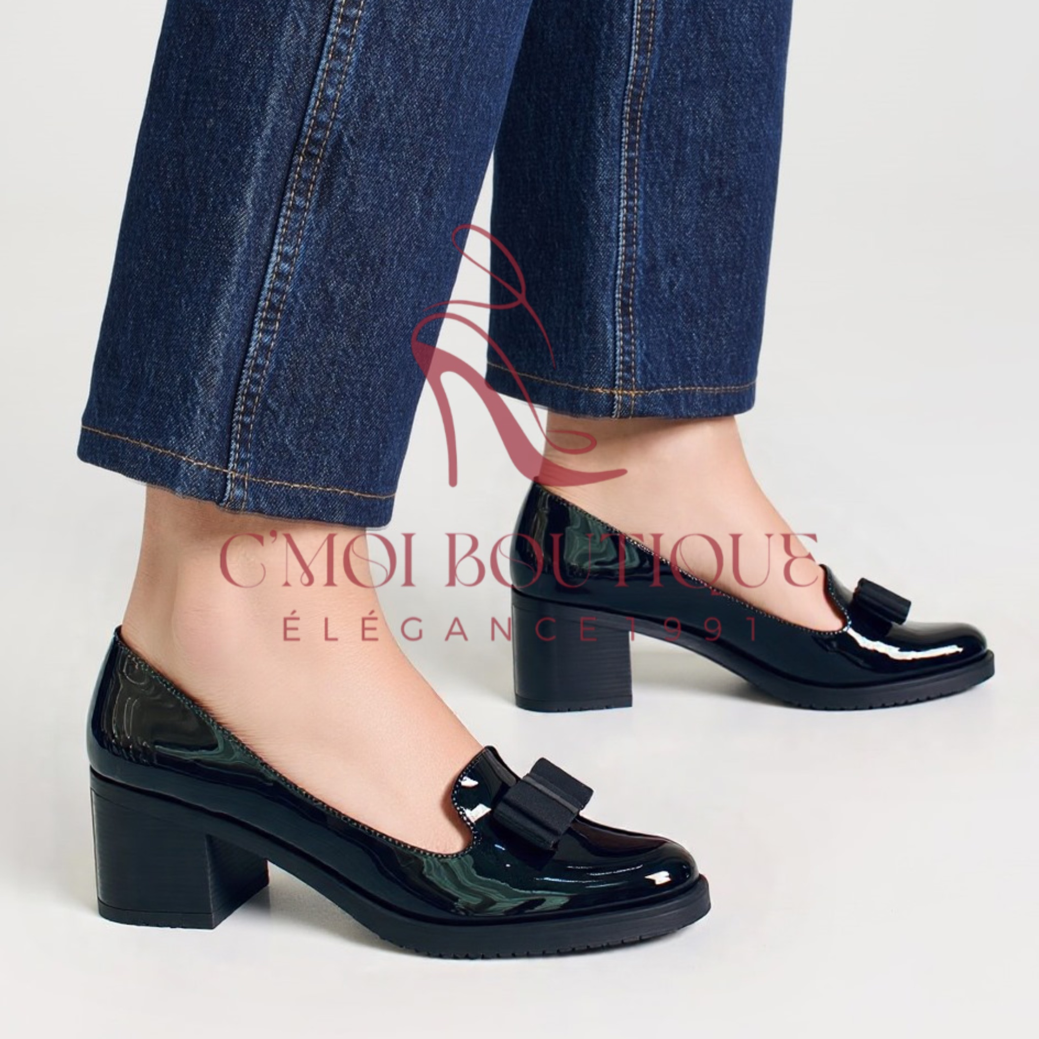 Le cuir verni aux finitions brillantes sublime chaque tenue, qu’il s’agisse d’un look professionnel, décontracté ou habillé. Le petit nœud délicat sur l’avant ajoute une touche élégante et discrète, parfaite pour les amatrices de détails sophistiqués.