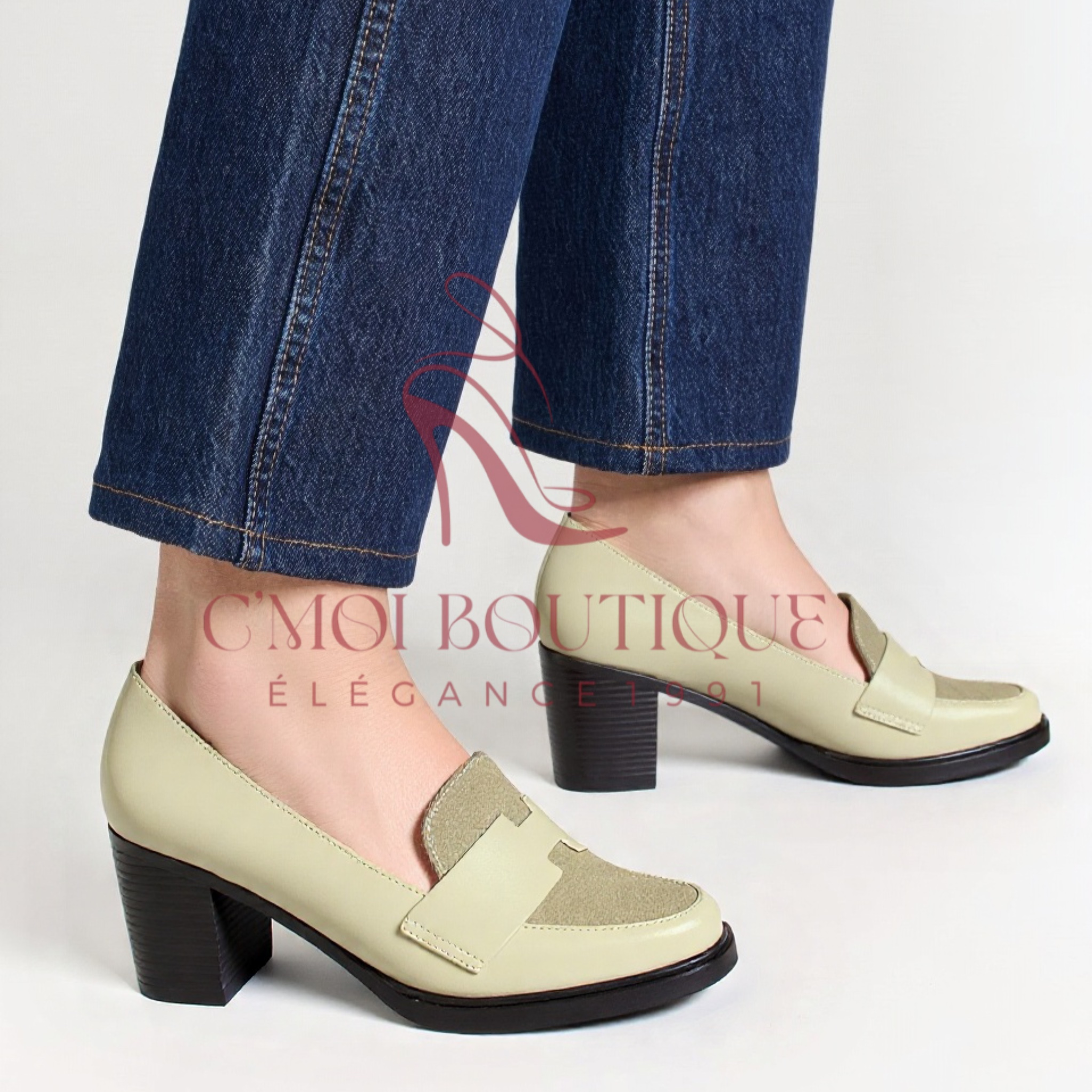 Talon carré stable, semelle douce et antidérapante pour marcher avec confiance avec des coleurs Noir, Beige, Bordeaux, Bleu .