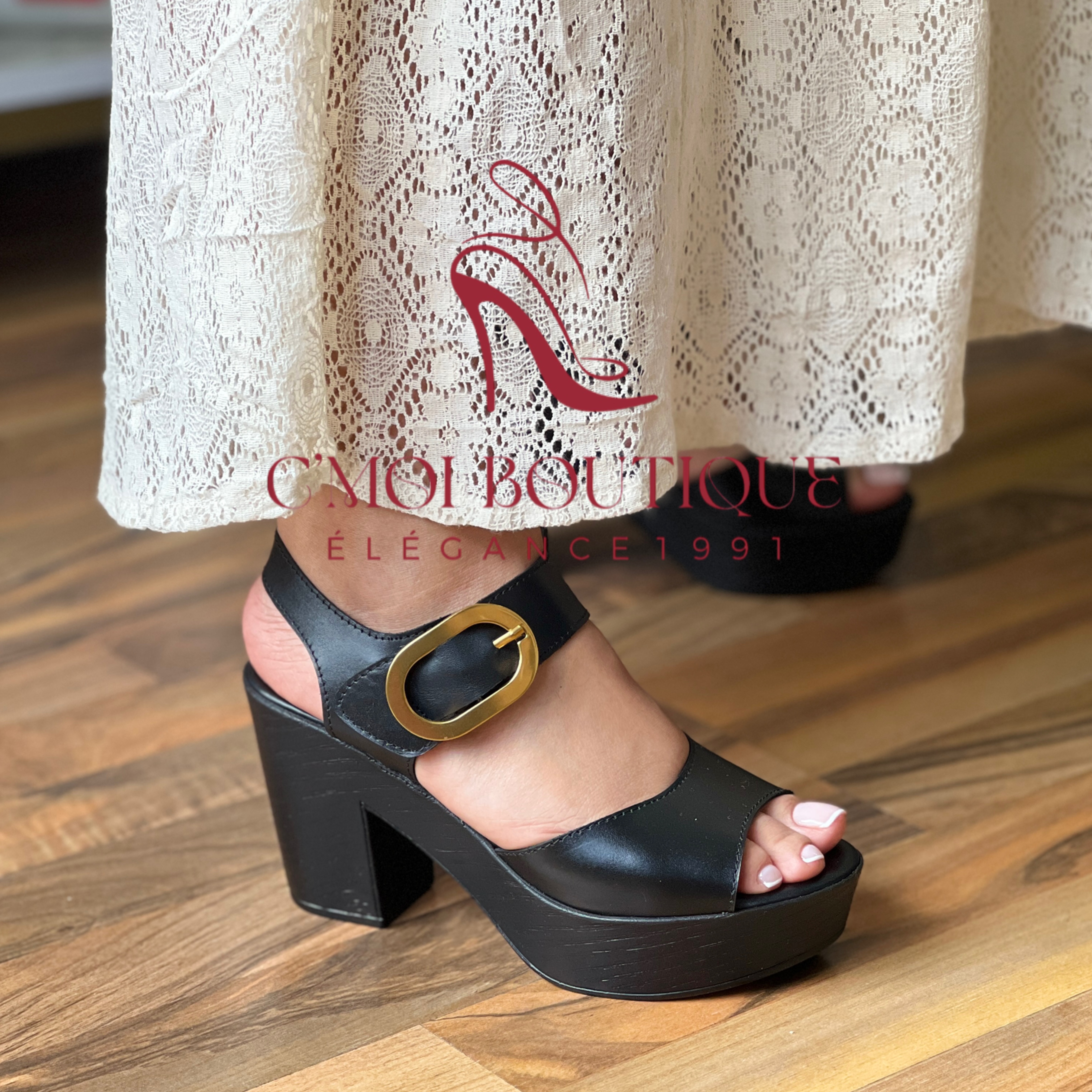 Sandales demi talon en cuir véritable – Élégance et confort au quotidien